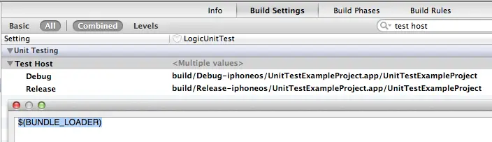 搜索Test Host,设置其值为$(BUNDLE_LOADER)效果如图