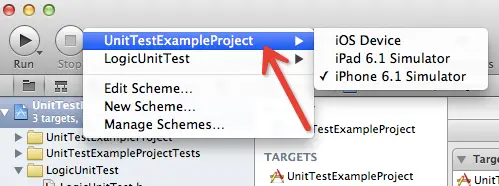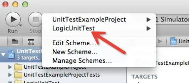 选择新建的scheme:LogicUnitTests和一个运行目标